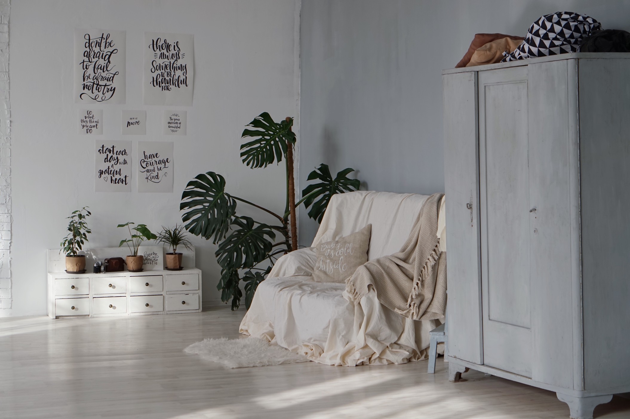 Additionally, a minimalist room requires light-colored curtains, one big rug, a bed, and a closet. In other words, it should look spacious.