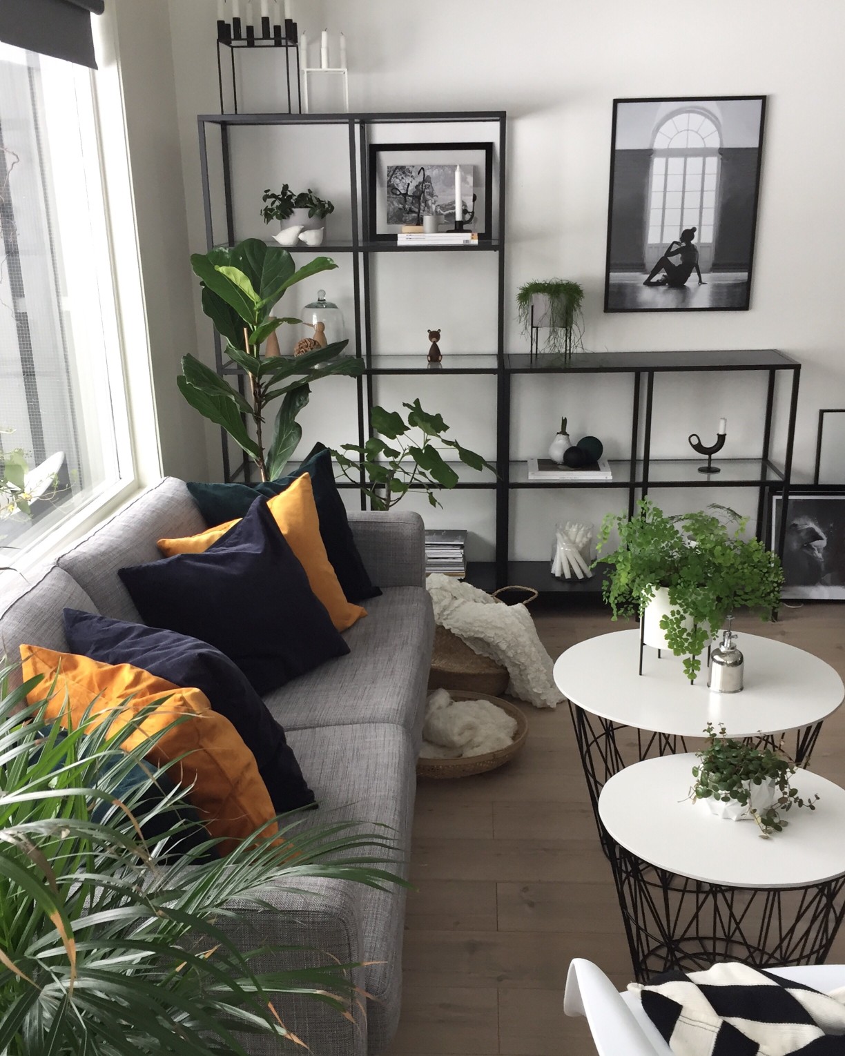 The white and black theme includes having all the items such as furniture, bedsheet cover, lamp table, and other things to be either white or black.